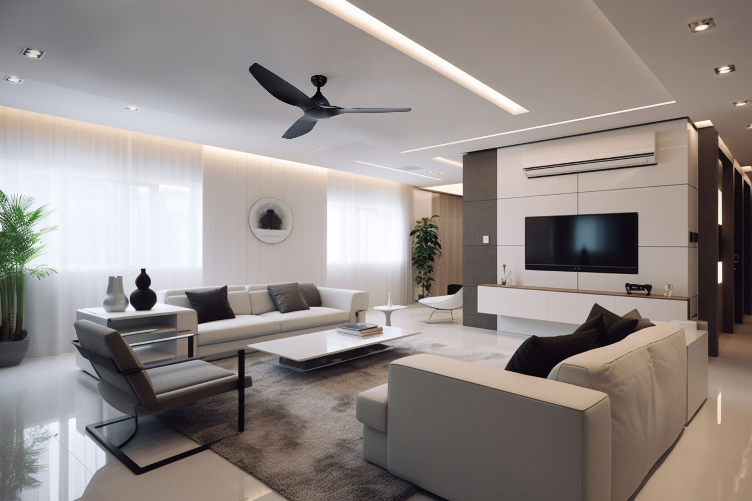 This 3 Blades 64 inch Ceiling Fan is equipped with a DC Motor 45W, resilient plastic blades and convenient remote control for powerful cooling performance. With a sturdy iron body, this fan offers durability for effectively cooling larger spaces.